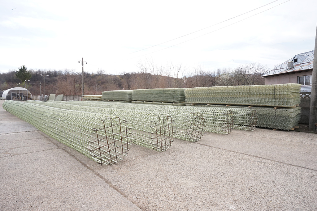 din fibră de sticlă, dimensiuni de 2m x 6m, diametrul armaturii între 1,5 - 12mm, cu toate dimensiunile de ochiuri.